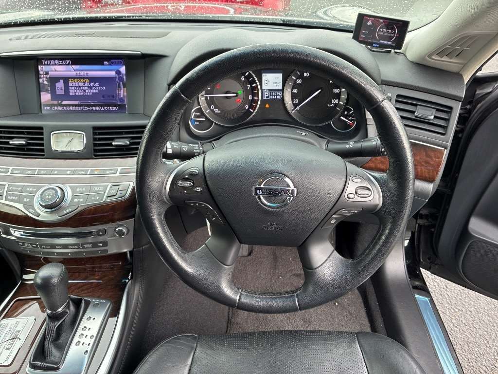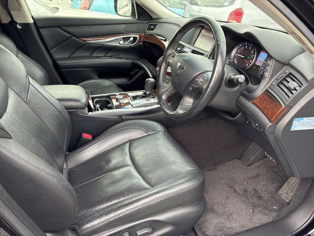 Experience the thrill of driving with the 2012 NISSAN Fuga Hybrid. This black beauty combines luxury with eco-friendly efficiency. Enjoy a smooth driving experience with automatic transmission and rear-wheel drive. Comfort meets style inside this well-maintained car. It features air conditioning, power windows, and electric seats. The sophisticated wood panel finish adds elegance to your ride. Stay safe with multiple airbags, ABS, traction control, and more. Drive with peace of mind knowing the NISSAN Fuga is equipped with advanced safety features like electronic brake-force distribution, brake assist, and anti-theft protection. Drive confidently both day and night with xenon headlights and fog lights illuminating your path. Embrace the elegance and eco-convenience of this remarkable hybrid vehicle.