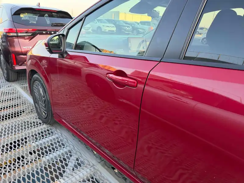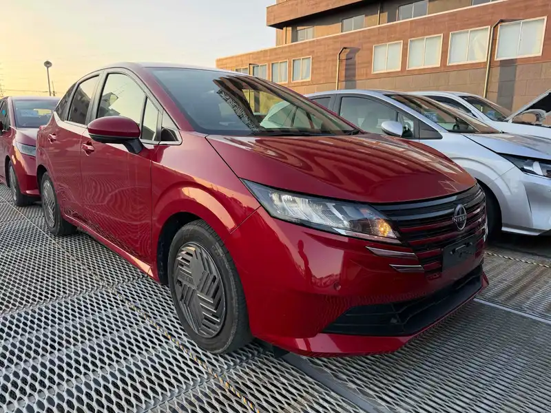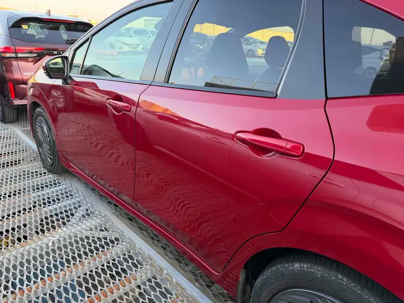 Experience the 2024 NISSAN Note Hybrid in bold red. This stylish car offers great fuel efficiency and a smooth ride with automatic transmission and front-wheel drive. Stay comfortable in any weather with the air conditioner, and enjoy convenience with power windows. Safety is a priority with the NISSAN Note. Drive with peace of mind thanks to multiple airbags, an anti-lock braking system, and a traction control system. Additional features like electronic brake-force distribution and brake assist help keep you in control. The NISSAN Note's foldable rear seat adds flexibility, while UV and toned glass provide comfort and privacy. This car combines smart design with advanced safety features, making it a perfect choice for city driving and road trips alike.